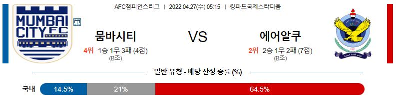 【AFCCL】 4월27일 뭄바이 시티 FC 알쿠와 알자위야인도의 뭄바이 시티는 알 샤밥과의 조별리그 5차전에서 0-6 대참사를 당하며 최종전 결과에 상관없이 탈락을 확정지었다. 현재까지 승점 4점으로 B조 꼴찌, 3위 알 자지라와 승점 동률을 기록 중인 상황. 남은 목표는 탈꼴찌 외에 없는 상태지만, 이미 인도 자국리그 일정을 5위로 마무리지은 만큼 이번 경기에 주전들을 내보낼 가능성이 높아 보인다. 다음 시즌 ACL에 참가할 수 없다는 점에서 스포츠중계 본선에서의 승리에 굶주림을 나타낼 수 있는 입장이기도 하다. 종아리 부상으로 대회 초반에 결장하던 주포 FW 앙굴로가 돌아왔다는 점, 강원과 부산에서 뛰었던 FW 디에고 역시 징계를 마치고 복귀한다는 점에 기대를 걸어볼 만하다. 스페인 빌바오 출신이자 2018-19 시즌 폴란드 리그 득점왕 앙굴로와 함께 K리그에서도 준수한 활약을 펼쳤던 디에고가 투톱으로서 호흡을 맞출 경우 이전 경기들보다 나아진 공격력을 보여줄 가능성도 충분해 보인다. 단, 앙굴로는 알 샤밥전 당시 무거운 몸놀림을 선보인 것으로 전해지고 있어 아직 100% 컨디션과는 거리가 먼 것으로 추정된다. 알 쿠와 상대로는 올 시즌 조별리그 2차전 당시 2-1로 승리했던 좋은 기억이 있으며, B조의 모든 일정은 알 샤밥의 홈 그라운드인 사우디 리야드에서 진행 중이다.