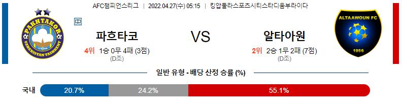 【AFCCL】 4월27일 파흐타코르 (파크타코르) 타슈켄트 vs 알 타원 FC
