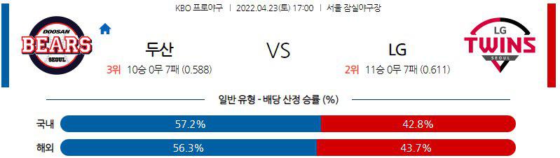 【KBO】 4월 23일 두산 vs LG