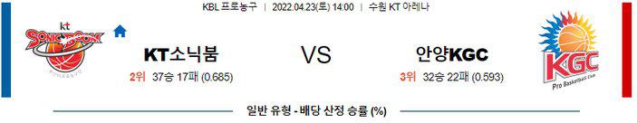 【KBL】 4월 23일 KT 소닉붐 vs KGC인삼공사