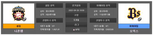 열람중 4월26일 NPB 니혼햄 : 오릭스 2022.04.26 348
