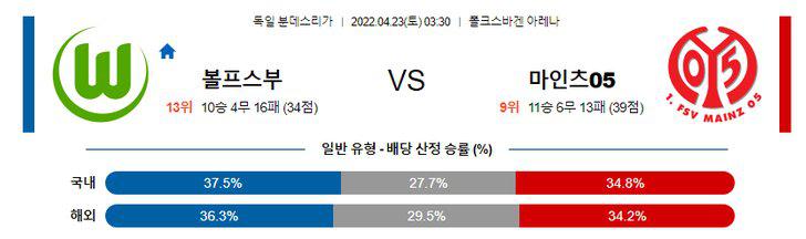 [분데스리가] 4월 23일 볼프스부르크 vs 마인츠