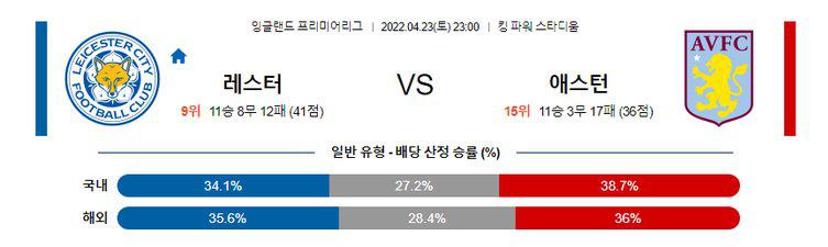 【EPL】 4월 23일 레스터시티 vs 아스톤빌라