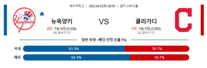 【MLB】 4월23일 뉴욕양키스 vs 클리블랜드