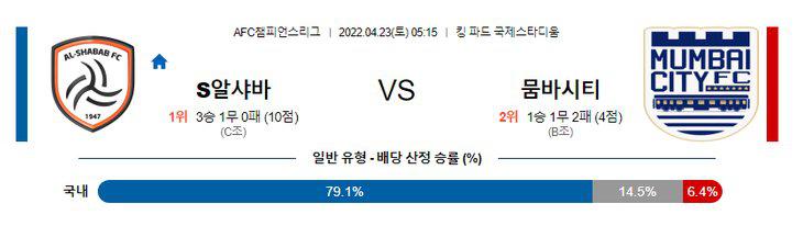 알샤밥이 압도적인 공격력으로 최근 4경기 중 3경기에서 오버(2.5 기준)를 기록한 점, 직전 맞대결에서도 오버(2.5 기준)가 나온 점을 고려하면 오버(2.5 기준)를 예상한다. 또한 객관적인 전력 상 ‘라리가 출신’ 바네가(MF)와 비에토(FW)가 버티고 있는 알샤밥과 뭄바이시티와 전력은 꽤나 차이가 난다. 알샤밥은 선수단의 이름값을 증명이라도 하듯 조별리그에서도 압도적인 모습을 보이고 있는 반면 뭄바시이티는 첫 출전한 챔피언스리그에서 갈피를 잡지 못하고 있다. 알샤밥 승 / 오버(2.5 기준)를 추천한다.