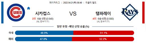 4월 21일 08:40 MLB C.컵스 : 탬파베이