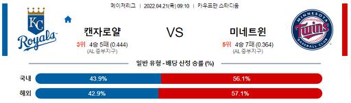 4월 21일 09:10 MLB 캔자스시티 : 미네소타