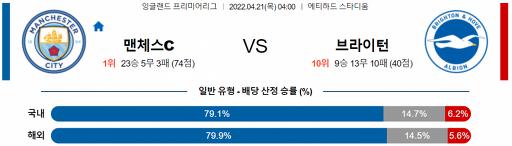 프리미어리그 4월 21일 04:00 맨체스터 시티 : 브라이턴 앨비언