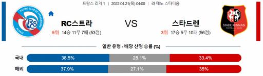 리그앙 4월 21일 04:00 RC 스트라스부르 : 스타드 렌 FC