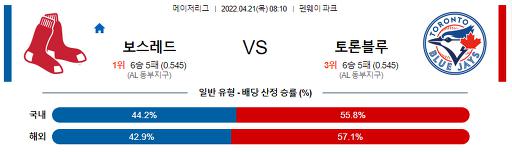 4월 21일 08:10 MLB 보스턴 : 토론토