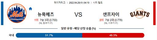 4월 20일 04:10 MLB 뉴욕 메츠 : 샌프란시스코