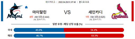 4월 20일 07:40 MLB 마이애미 : St.루이스