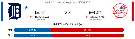 4월 20일 07:40 MLB 디트로이트 : 뉴욕 양키스