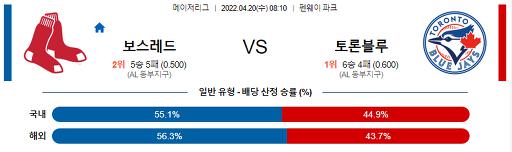 4월 20일 08:10 MLB 보스턴 : 토론토