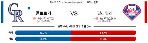 4월 20일 09:40 MLB 콜로라도 : 필라델피아