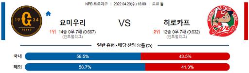 4월 20일 18:00 NPB 요미우리 : 히로시마