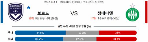 리그앙 4월 21일 02:00 지롱댕 드 보르도 : AS 생테티엔
