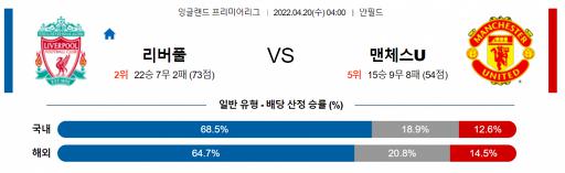 잉글랜드 프리미어리그 4월 20일 04:00 리버풀 : 맨체스터 유나이티드