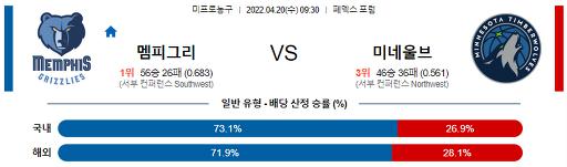 4월 20일 09:30 NBA분석 맴피스 : 미네소타