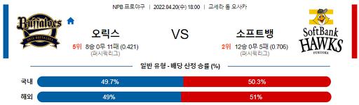 4월 20일 18:00 NPB 오릭스 : 소프트뱅크