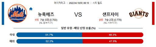 4월 19일 MLB 뉴욕 메츠 : 샌프란시스코