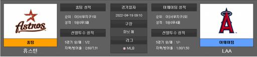 4월19일 MLB 휴스턴 : LA에인절스휴스턴의 선발투수는 우완 루이스 가르시아가 나선다.