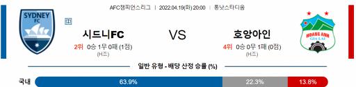 아시아 챔피언스 4월 19일 20:00 시드니 FC : 호앙아인 잘라이