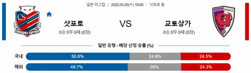 일본 리그컵 4월 20일 19:00 콘사도레 삿포로 : 교토 상가 FC