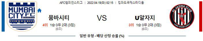 【AFC CL】 4월 19일 뭄바이 시티 FC vs 알 자지라