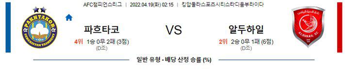 【AFC CL】 4월 19일 파흐타코르 타슈켄트 vs 알 두하일