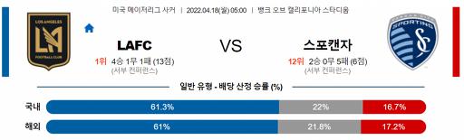 미국 MLS 4월 18일 05:00 로스앤젤레스 FC : 스포팅 캔자스시티