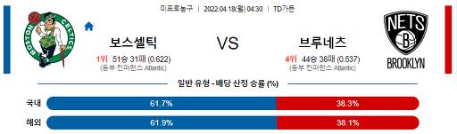 4월 18일 04:30 NBA분석 보스턴 : 브루클린