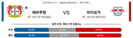 열람중 독일 분데스리가 4월 18일 02:30 바이어 04 레버쿠젠 : RB 라이프치히 2022.04.17 274