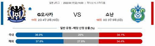J리그 4월 17일 14:00 감바 오사카 : 쇼난 벨마레