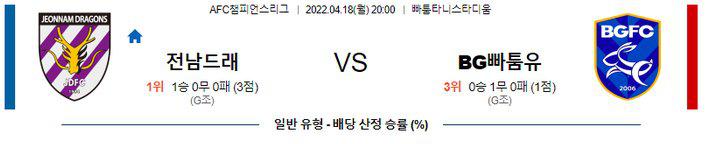 【AFC CL】 4월 18일 전남 드래곤즈 vs 빠툼 유나이티드