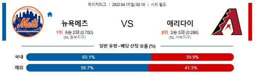 4월 17일 02:10 뉴욕 메츠 : 애리조나