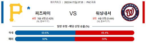 4월 17일 07:35 피츠버그 : 워싱턴