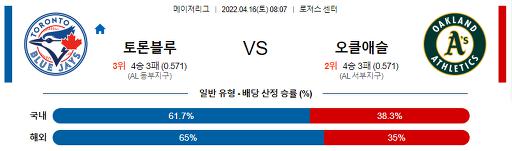4월 16일 08:07 MLB 토론토 : 오클랜드