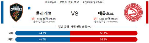 4월 16일 08:30 NBA분석 클리블랜드 : 애틀란타