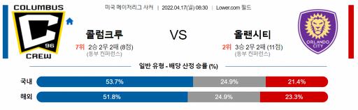 미국 MLS 4월 17일 08:30 콜럼버스 크루 : 올랜도 시티 SC