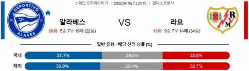 스페인 프리메라리가 4월 16일 23:15 알라베스 : 라요 바예카노