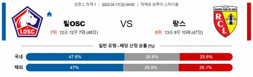 프랑스 리그앙 4월 17일 04:00 릴 OSC : RC 랑스
