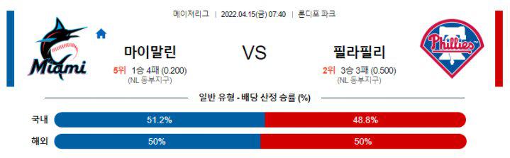 【MLB】 4월15일 마이애미 vs 필라델피아