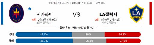 미국 MLS 4월 17일 09:00 시카고 파이어 : LA 갤럭시