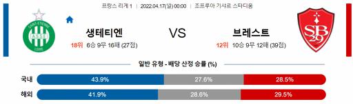 프랑스 리그앙 4월 17일 00:00 AS 생테티엔 : 스타드 브레스트 29