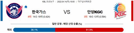 4월 14일 19:00 한국가스공사 : 안양 KGC
