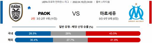 UEFA 유로파리그 4월 15일 04:00 PAOK FC : 올림피크 마르세유