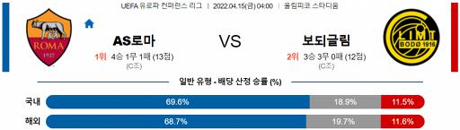 UEFA 유로파리그 4월 15일 04:00 AS 로마 : FK 보되/글림트
