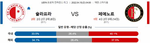 UEFA 유로파리그 4월 15일 04:00 SK 슬라비아 프라하 : 페예노르트