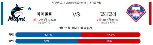 4월 16일 07:40 MLB 마이애미 : 필라델피아